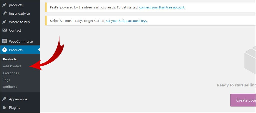 1. Go to the "Products" control under WooCommerce in the left admin panel of WordPress.