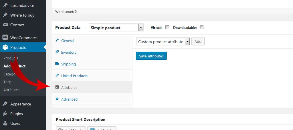 12. Attributes tab: Set the attributes of the products you're selling. For example, colors and sizes for clothing, supported operating systems for software and supported phones for cases are all considered types of attributes.