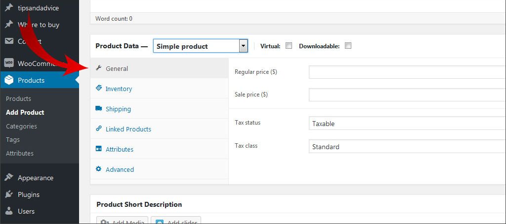 8. General tab: Input the regular price of the product. You can also set a sale price as well as a schedule for the item, which is a great marketing method some time in the future. However, the sale price is an optional field.