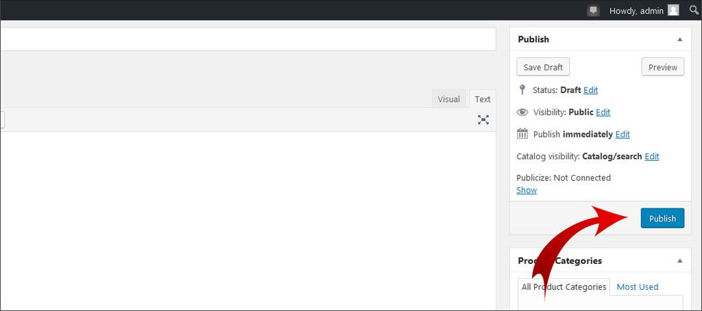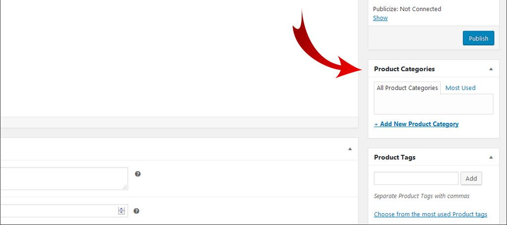 14. Next you want to select a product category. This is found either by scrolling down or accessible on the right, depending on how you have the columns in WordPress set. For example, a new hard drive could be placed in a category for "Hard Drives."