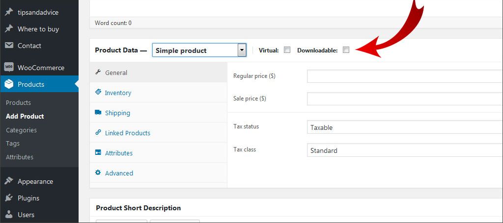 7. WooCommerce allows you to choose virtual or downloadable products. Only check these if you are not selling tangible goods, such as downloadable software or online graphics.